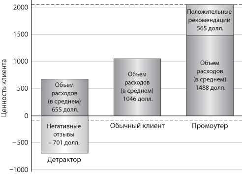 Рис. 2.9. Совокупная ценность промоутеров и детракторов, рассчитанная на основании их расходов и рекомендаций