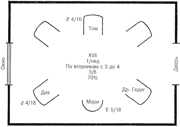 Рис. 34. «Дискуссионная диаграмма» терапевтической группы. Такая диаграмма вычерчивается на доске, когда рассматривается психотерапевтическая группа.