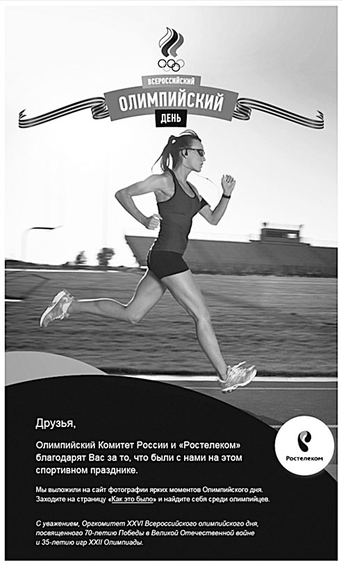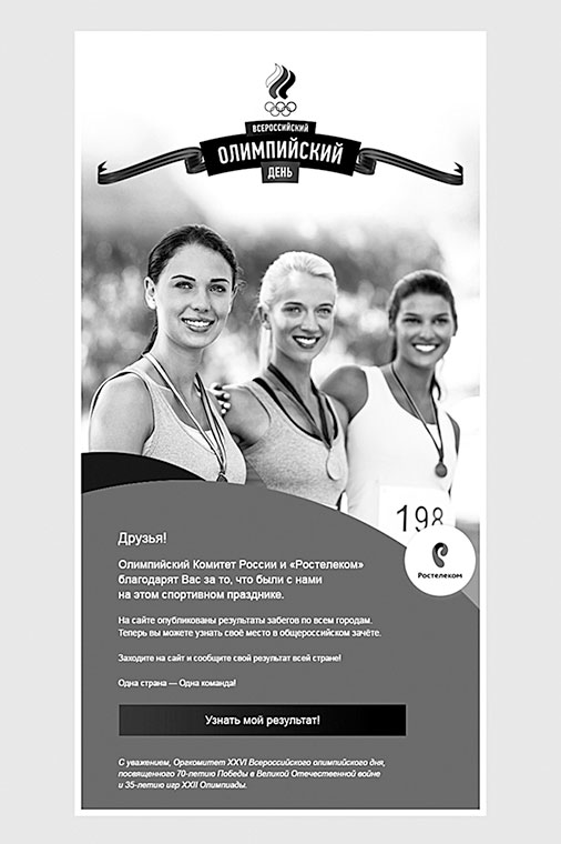 Если участников много, вы можете подключить в рассылку зарегистрированные адреса электронной почты. Вот такие сообщения получили участники забега «Олимпийская пятерка»: