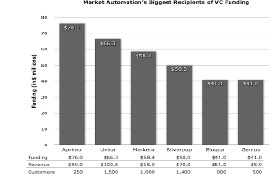 По оценкам экспертов более чем 60 тыс. компаний в настоящее время развивают ПО на основе CRM-систем, из них только около 7 % от общего числа разрабатывают средства маркетинговой автоматизации[126](данные на июнь 2011 года.).
