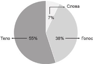 Теперь обратимся к важности ключевых элементов, которые влияют на качество убеждения: слова, голос и язык тела.