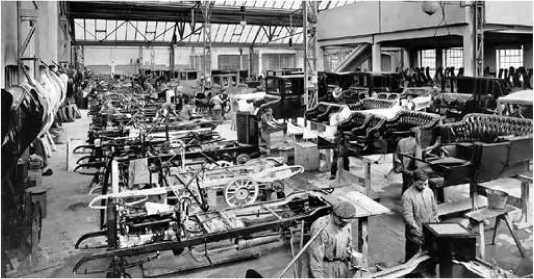 Цех сборки автомобилей на производстве Карла Бенца