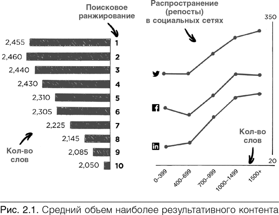 Текст, которому удается попасть на первую страницу результатов поиска в Google, в среднем имеет объем более 2000 слов! Кроме того, ранжирование контента с 1 по 10 место почти прямо пропорционально его объему.
