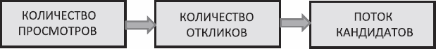 Ключевой показатель, исходя из которого планируются ресурсы на подбор персонала, – это количество персонала, которое необходимо привлечь. Далее в книге мы рассмотрим особенности массового и точечного подбора персонала, в данном разделе мы будем отталкиваться только от планируемого количества вакансий. Например, нам нужно набрать отдел продаж в количестве семи человек. Параллельно нам нужно найти семь водителей-экспедиторов на грузоперевозки. Исходя из количества вакансий, нам нужно запланировать поток кандидатов. Поток кандидатов формируется, исходя из количества откликов, а количество откликов – из количества просмотров.