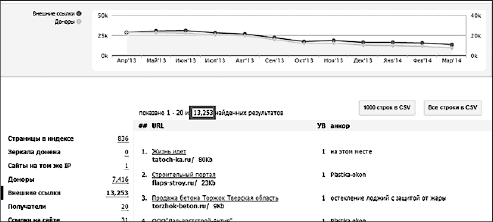 Итак, что мы видим? В данный момент на сайт стоит 13 253 ссылки. К тому же на графике прослеживается динамика – за последний год количество ссылок уменьшилось.