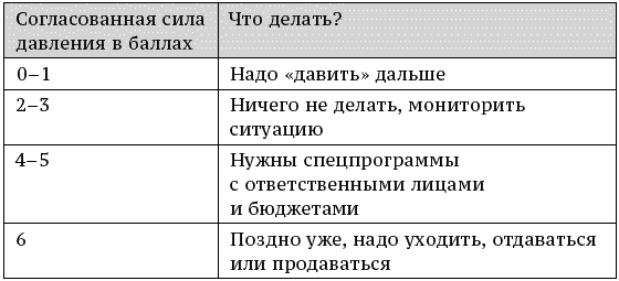 Угрозу со стороны возможных новых конкурентов и товаров-заменителей мы тоже оценим от 0 до 6 баллов. Следующий этап – мы должны решить, что делать. На этом этапе я показываю маленькую табличку (табл. 2.4).