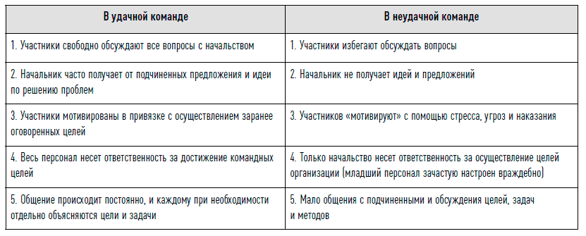 По Р. Ликерту, существуют следующие отличия между отношениями в удачной и неудачной команде: