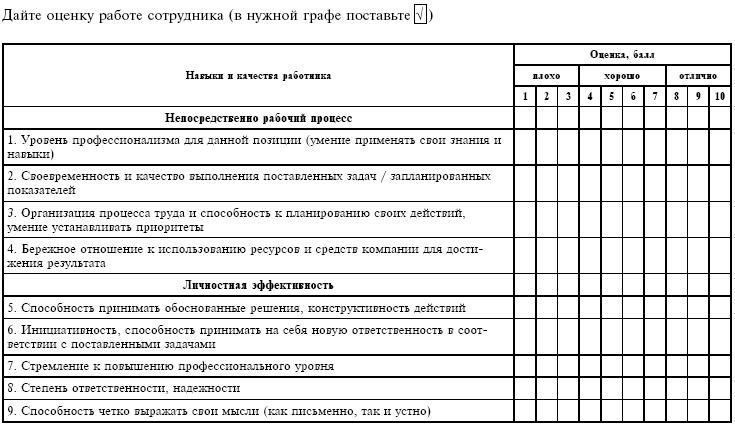 ОЦЕНKА СОТРУДНИKА ___________________(ФИО, должность)