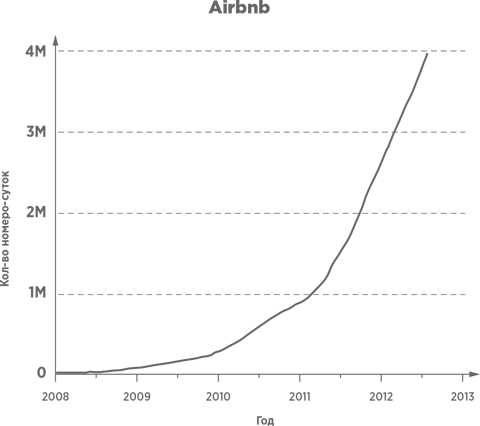 Возьмем Airbnb – компанию, которая помогает людям «зарабатывать, делясь свободным жильем». Основанная в 2008 году, в настоящее время Airbnb насчитывает 1324 сотрудников и предлагает более 500 тысяч различных вариантов жилья в 33 тысячах городов. Хотя Airbnb не владеет никакими физическими активами, ее рыночная стоимость оценивается почти в 10 млрд долларов. Это больше, чем стоимость сети Hyatt Hotels, насчитывающей 45 тысяч сотрудников в 549 отелях по всему миру. И в то время как бизнес Hyatt растет относительно вяло, количество номеро-суток, обеспечиваемых Airbnb, увеличивается экспоненциальными темпами. При сохранении нынешних темпов роста к концу 2015 года Airbnb станет крупнейшим гостиничным оператором в мире.