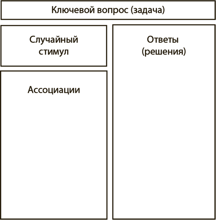 Случайный стимул записывается фасилитатором под ключевым вопросом – ниже и слева от него (см. схему 1).