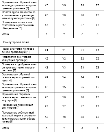 Теперь обратимся по традиции к калькулированию себестоимости уличной рекламы. В общем виде калькуляционная матрица представлена в табл. 5.