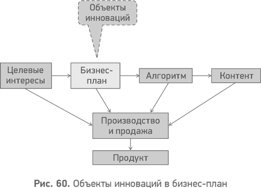 Теперь рассмотрим, что такое бизнес-план. Попробуем разложить его на отдельные составляющие – объекты инноваций. При этом не будем забывать, что бизнес-план является следствием целевых интересов (рис. 60).