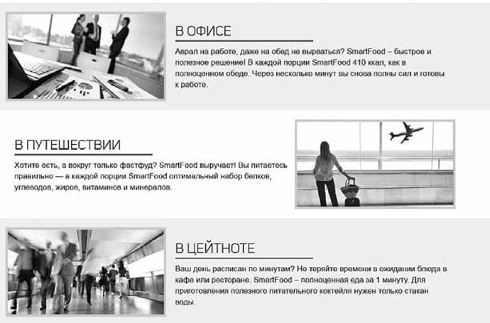 Фрагмент продающей страницы http://smartfood-soylent.ru/, созданной в Агентстве Продающих Текстов Дмитрия Кота