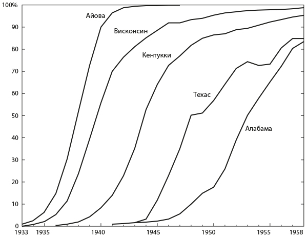 Источник: Zvi Griliches. Hybrid Corn and the Economics of Innovation // Science 132. 1960. June. № 3422. P. 275–280. Опубликовано с разрешения AAAs.