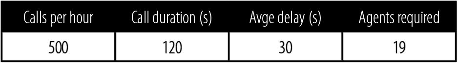 Итак, определив для себя требуемые параметры, заходим на сайт www.erlang.com. Выбираем опцию «Online Erlang Traffic Calculators», затем «The Erlang C Calculator». Вводим требуемые параметры: 500 вызовов в час, средняя продолжительность вызова = 2 мин (120 с) и среднее время ожидания = 30 с; получаем рекомендуемое число рабочих мест операторов, а именно 19 (рис. 2.3).
