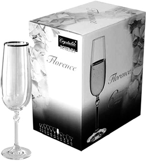 Создатели изделий из богемского стекла аналогичную задачу решают прямо на упаковке (рис. 131). На торце коробки в самом низу показана вся коллекция, а те фужеры, которые сейчас находятся внутри, выделены сплошным белым цветом.
