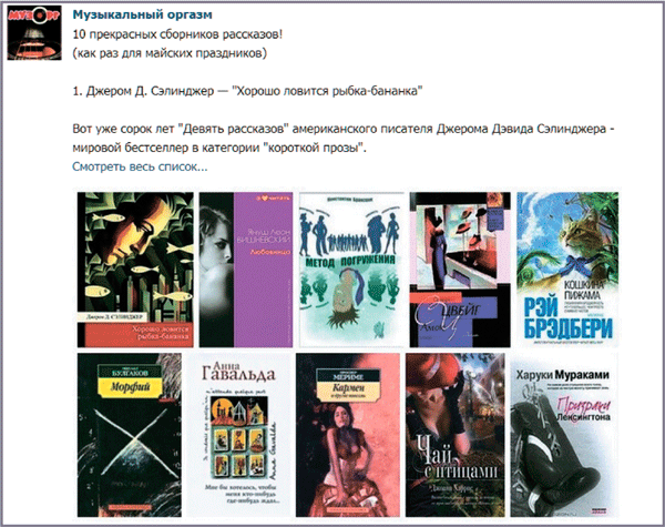 В. Видео/аудио. То же самое, что и подборка, с той лишь разницей, что перешедший по ссылке пользователь получает не текстовую информацию, а звуковую или визуальную. Для того чтобы прорекламировать другой паблик, вы публикуете картинку, на которой написано (как вариант) «10 лучших телеверсий российских спектаклей». В описании к ней можно перечислить, что именно это за спектакли.