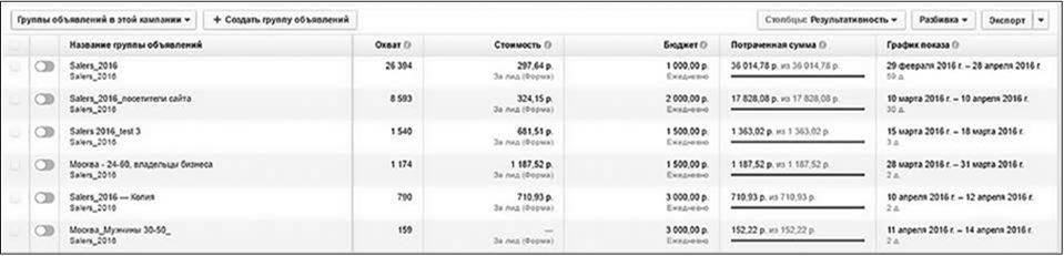 Изначально их было шесть, и сразу, как только заказчик все перепроверил и утвердил, мы начали. По факту в процессе работы было оттестировано не 6, а 12 сегментов аудитории с учетом их комбинаций. Но если напрячься, все эти аудитории можно свести к следующим: