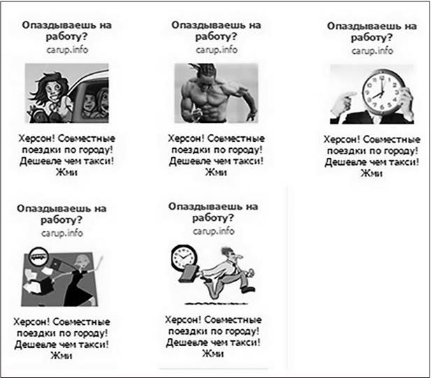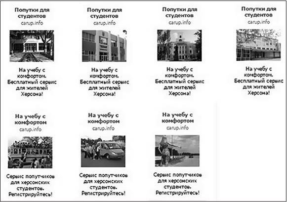 Обратите внимание, что в тизерах использованы изображения этих самых вузов. Плюс три изображения с «общестуденческим» контекстом. А тексты везде одинаковые.