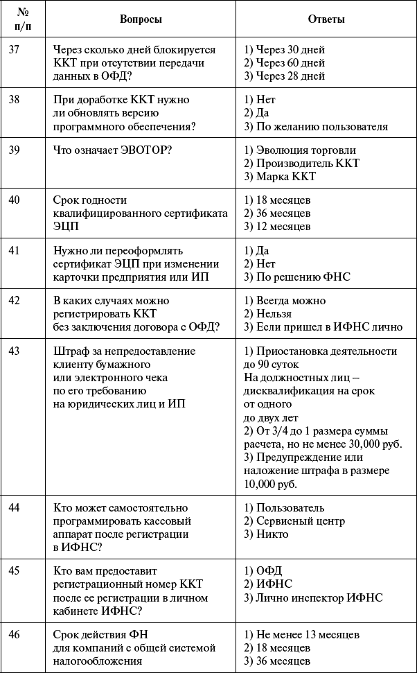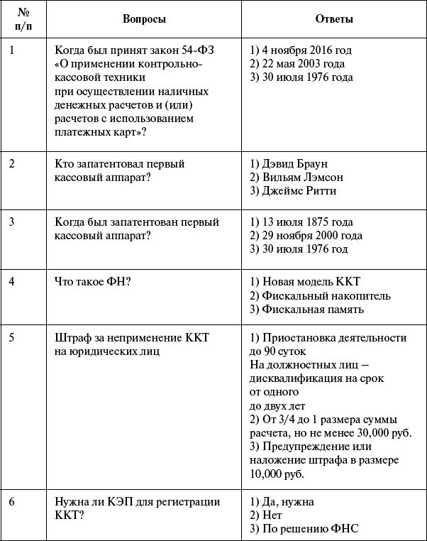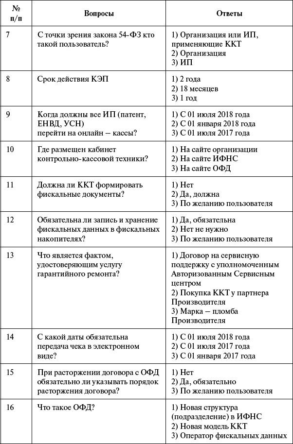 Правильные ответы, а также много другой полезной информации, Вы всегда найдёте на сайтах: www.biznes-uslugi.ru; www.alfakkm.ru; www.аккорд-ккм.рф
