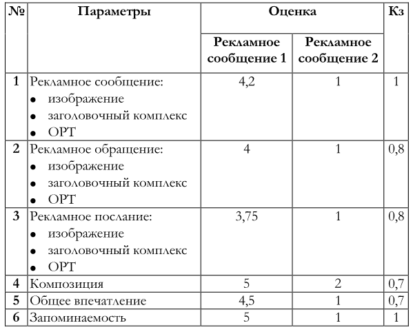 экспертная оценка рекламного сообщения 1;