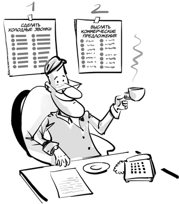 Правильный рабочий режим должен выглядеть иначе. Разделите время, которое вы выделили на холодные звонки, на несколько промежутков. Сначала обзвоните всех клиентов до единого, но ничего не отправляйте кроме срочной информации, которой будет немного. Помечайте, кому из клиентов вы должны отправить письма. Когда вы обзвонили всех, кого запланировали на сегодня, отвлекитесь на пять минут, смените психологическую обстановку, походите, выпейте чашечку кофе. После этого сядьте и подготовьте все необходимые коммерческие предложения и отправьте их. Вы увидите, что при таком режиме работы ваша эффективность повысится более чем в два-три раза – в зависимости от специфики бизнеса и сложности подготовки предложений.