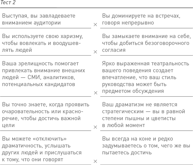 Черту, отделяющую способность производить впечатление от мелодраматичности, как и черту между гордостью и самонадеянностью, можно переступить неосознанно. Чтобы понять, с какой стороны черты вы находитесь, изучите тест 2.