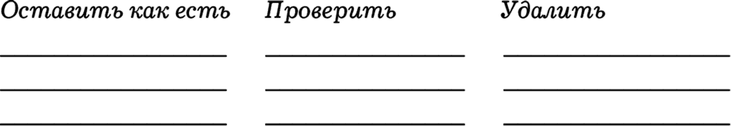 Прямо сейчас посмотрите, сколько записей в вашей телефонной книжке. Поставьте себе задачу каждый день просматривать по 20–30 записей и сортировать их на три группы: