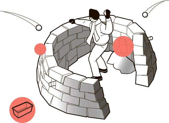 Принимайся за строительство крепости. Раздобудь где-нибудь формы для выпекания хлеба, выходи на улицу и принимайся лепить кирпичи из снега. Наполни форму снегом и утрамбуй его. Переверни форму, положив открытой стороной на снег, а потом резко подними ее вверх, чтобы снег не успел к ней прилипнуть. Обрызгай водой первые ряды снежных кирпичей, чтобы те покрылись льдом и стали более прочными. В дальнейшем используй кирпичи из более рыхлого снега, чтобы стены крепости не обрушились под их тяжестью. Высота стен не должна превышать метр. Крышу возводить не стоит, чтобы ребята могли атаковать противника.