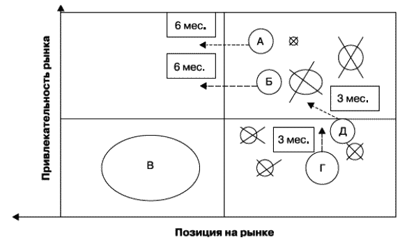 Рис. 2.3. Пример принятия решений по Бостонской матрице