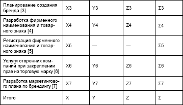 Упоминание платежей в связи с брендингом наводит на мысль о необходимости правильно калькулировать себестоимость готового, попавшего в раскрутку бренда. Калькуляция брендовых затрат производится в соответствии с матрицей, представленной в табл. 4.