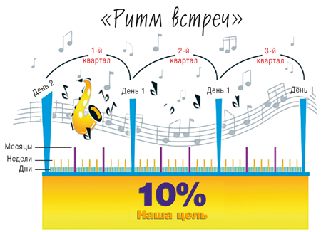 4. Играть в одном ритме: то же, что делает для группы барабанщик, задавая ритм, – задает ритм встреч для организации (корректирование).