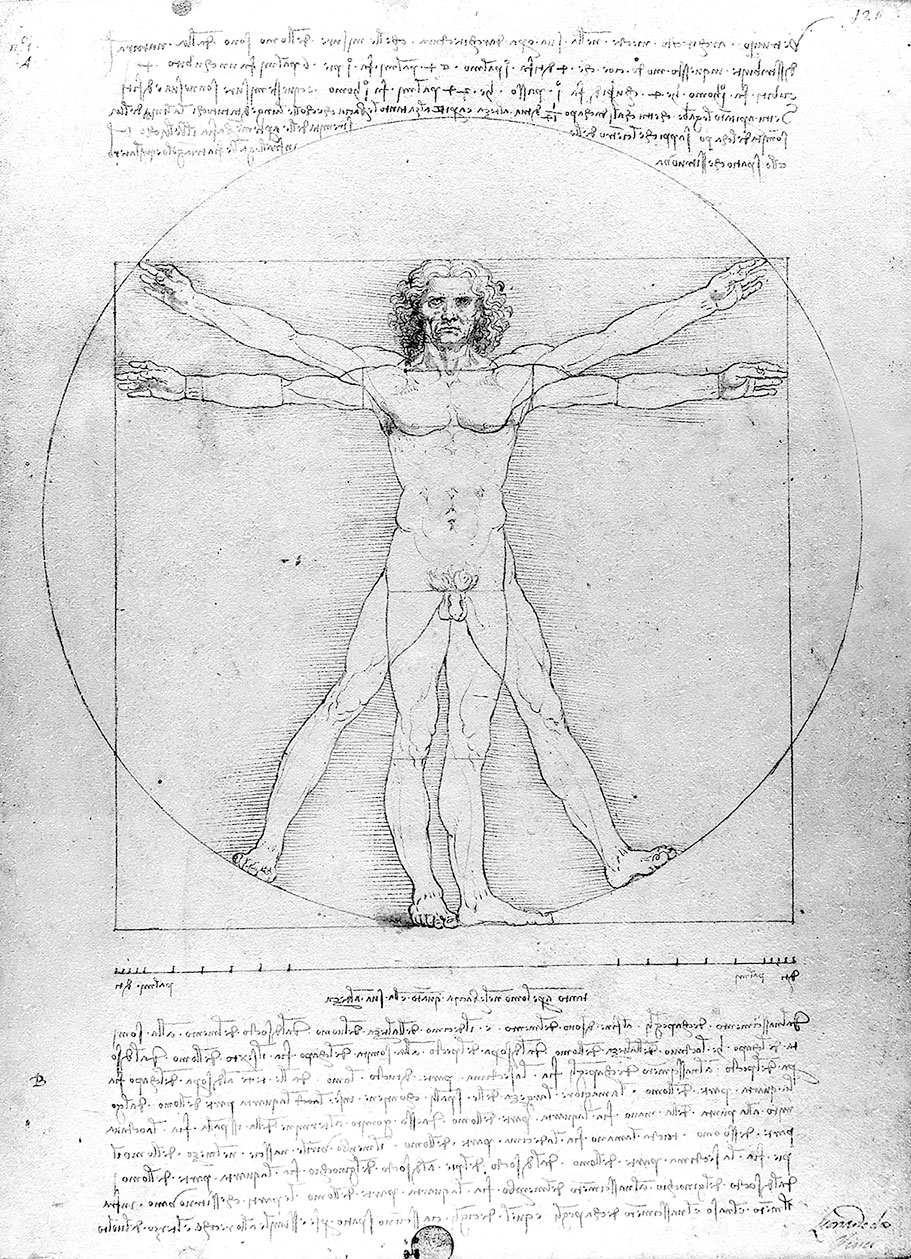 Разговариваю с одним таким специалистом. Он считает, что перед публикой надо активно использовать жест поднятых на уровень груди, широко раздвинутых и развернутых ладонями к аудитории рук, это, мол, свидетельствует о позитивности выступающего, его открытости. «Разве? – спрашиваю я. – Однообразная жестикуляция двумя руками параллельно свидетельствует о зажатости оратора, а не об открытости». «Как же, – возражает он, – это же так естественно, ведь симметрия есть гармония, посмотрите на рисунок Леонардо да Винчи».