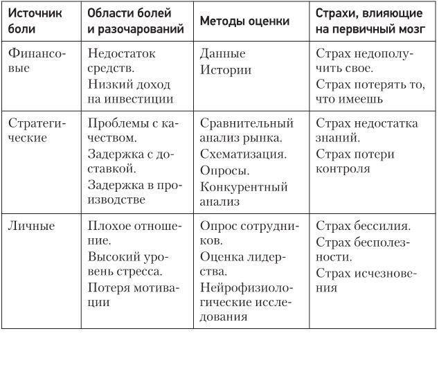 Три источника болей. Мы делим их на три главные категории: финансовые, стратегические и личные.