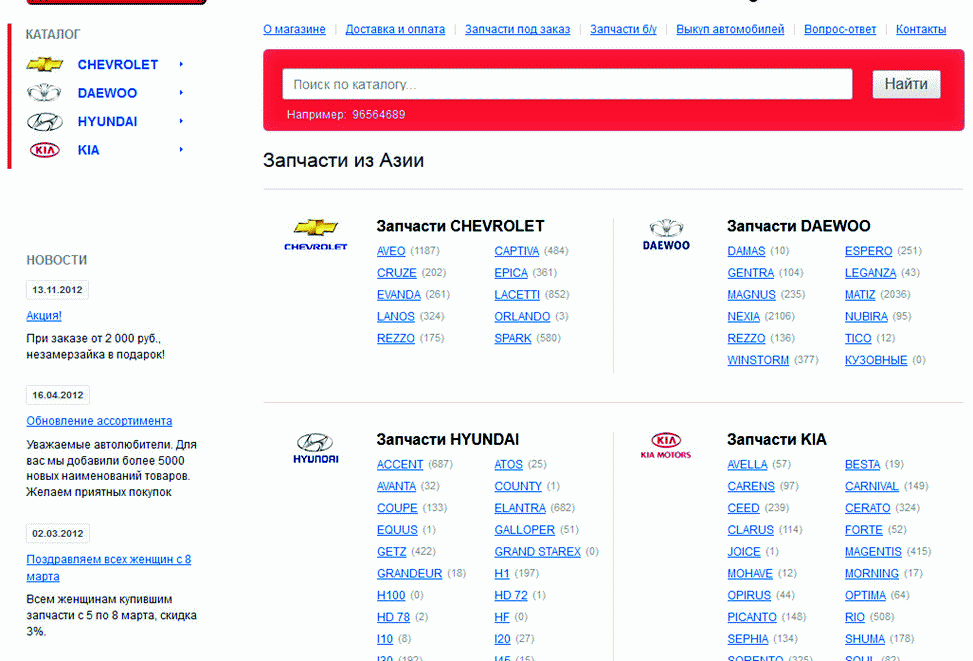 Вот, к примеру, главная страница интернет-магазина автозапчастей: