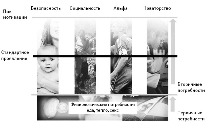 «Мотивационная структура предопределена генетически» (она является филогенетическим наследием функций, связанных с важнейшими базовыми потребностями, которые выступают сфокусированной движущей силой). Мотивационная структура формируется индивидуально в процессе взросления и приобретения жизненного опыта каждой личностью (культурное наследие и образование). Мотивационная структура включает четыре основные категории (базовых мотива):