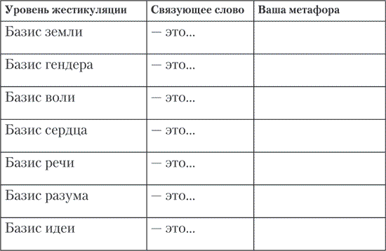 5. Придумайте и впишите метафору для каждого уровня жестов.