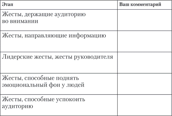 7. Сформируйте по блокам список жестов, полезных спикеру.
