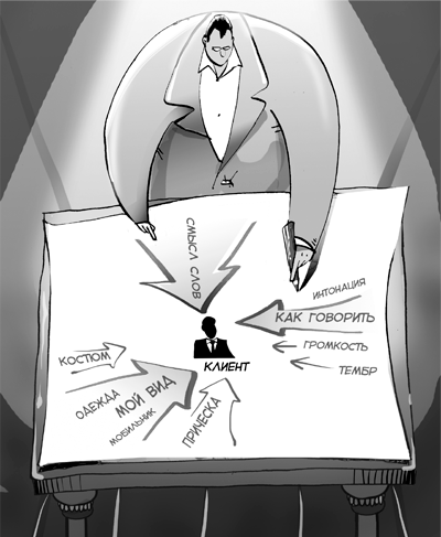 Как влияют вербальные (смысл слов) и невербальные (внешний вид, голос) компоненты на восприятие – мы с вами рассмотрели в главе 10 «Презентация. Как вызывать желание купить». Но еще раз вкратце повторим. Невербальная компонента – это 93 % влияния на собеседника (55 % – как мы выглядим, 38 % – как мы говорим), а вербальная – всего лишь 7 %.