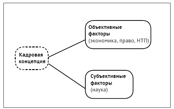 Безусловно, на формирование кадровой концепции оказывают воздействие не только объективные факторы (развитие экономики, науки, трудовое законодательство, специфика бизнеса, этап жизненного цикла организации и ее стратегия), но и такие субъективные факторы, как уровень управленческой компетентности менеджмента, отношение собственников к сотрудникам, организационная культура и др.