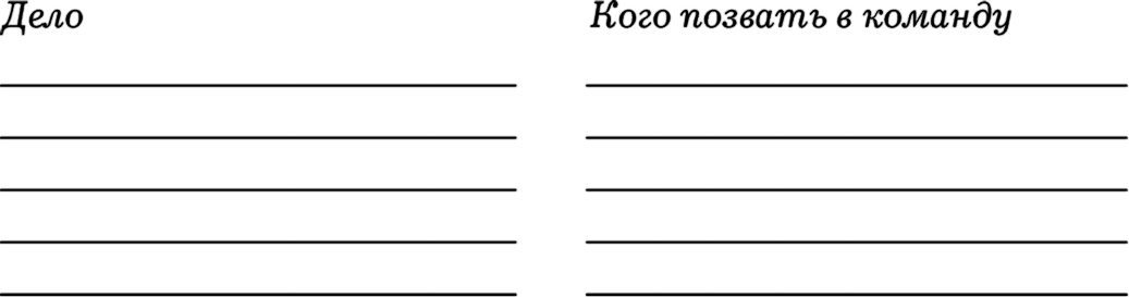 Составьте перечень дел, которыми вы сейчас занимаетесь. Тех дел, которые принесут хороший результат. Не нужно включать в перечень ваши повседневные рутинные обязанности или рабочие задачи, которые поставил вам руководитель. Что вы делаете такого, за что ожидаете общественного одобрения, похвалы близких людей или положительных отзывов? Вот такие дела включите в список, а потом подумайте, кого можно было бы пригласить в «команду проекта».