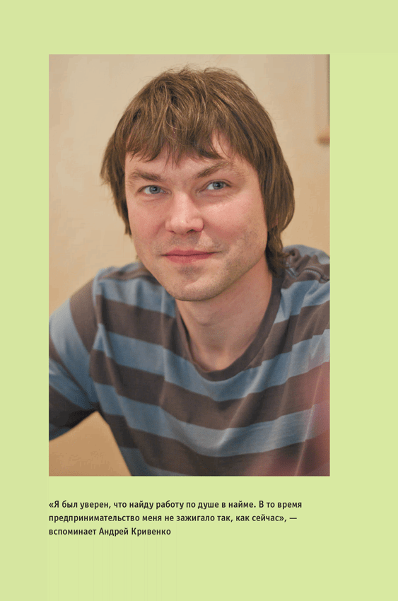 Не встретив понимания среди потенциальных работодателей, Кривенко решился на создание собственной компании. С одним миллионом рублей личных накоплений Андрей начал карабкаться на гору под названием Предпринимательство. Голова пухла от идей, но большинство из них были нежизнеспособны.