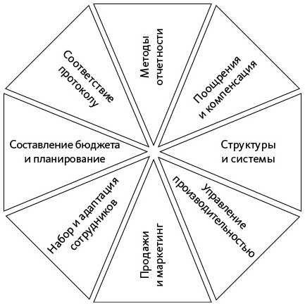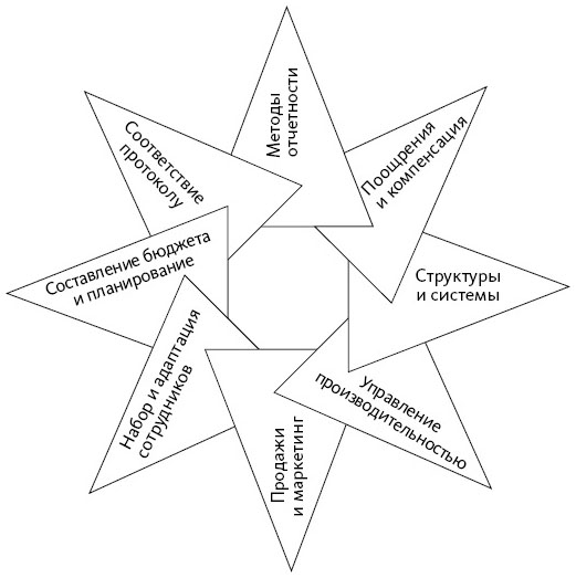Рис. 18 и 19 представляют две организации с одинаковыми общими категориями систем и процессов, характерных для любой компании, – это методы отчетности, процессы продаж, системы оценки производительности и так далее.