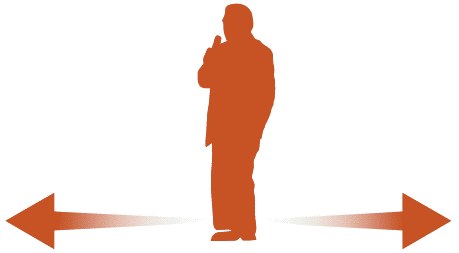 Голова. Если оратор примерно за одну-полторы минуты пробегает взглядом по секторам, то он как бы смотрит из стороны в сторону (главное – не мельтешить и не создавать впечатление, что ваша голова, как заведенная, мотается отдельно от тела).