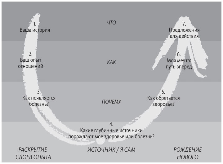 Наконец, есть четвертый уровень – еще более глубокий. Здесь проблемы со здоровьем рассматриваются как исходный материал для личностного развития и культивации внутреннего мира. Они побуждают полностью раскрыть потенциал внутренних источников творчества, отправиться в путь к истинному «я». «Я никогда ничем не болела, – сказала мне одна женщина. – И вдруг обнаружился рак. Обычно я всех развлекала. Много работала, была членом многих комитетов и просто не обращала внимания на болезнь. Это была борьба. Я не хотела, чтобы во мне присутствовал недуг. Говорила себе: просто не обращай внимания. И вернулась на работу, а в результате через два года случился срыв. Тогда я была вынуждена прекратить трудиться. После этого, уже после операции, отправилась к психотерапевту и научилась говорить о своей болезни просто, как сейчас с вами. Знаете, лишь в 58 лет я смогла произносить “нет”. До этого была “всегда готова”. Всегда в действии. Даже не осознавала, что по ходу дела потеряла собственное “я”. Теперь не беспокоюсь о будущем. Для меня важно настоящее. Сейчас».