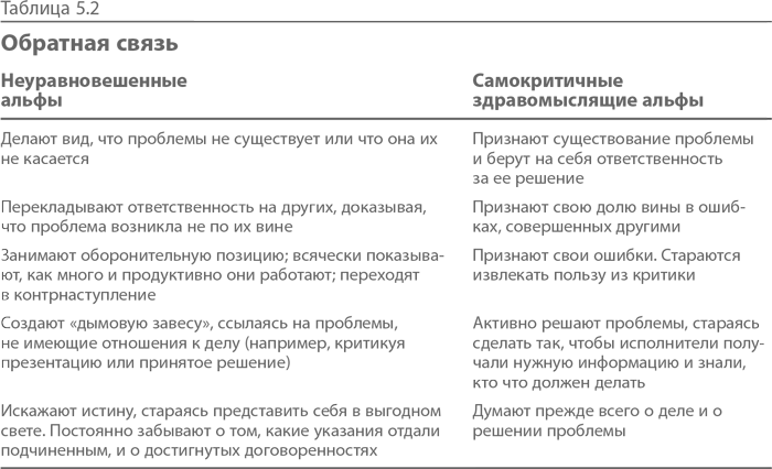 Как видно из табл. 5.2, уравновешенные руководители извлекают из критики пользу и меняют свое поведение, а неуравновешенные встречают ее в штыки.