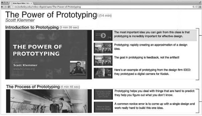До настоящего момента возможность просматривать, сканировать и перематывать видео предоставлялась относительно редко. Поэтому группа из Калифорнийского университета предложила идею видеодайджеста.