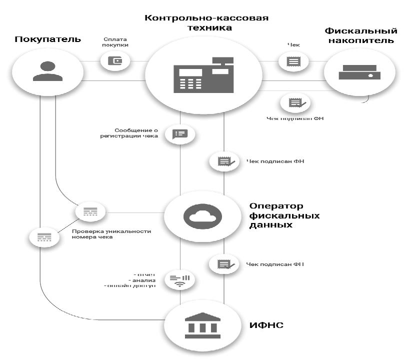 В Законе указаны требования не только ко всем участникам рынка изготовления и применения ККТ, но и к их конструкции, т.е. конкретным образцам контрольно-кассовой техники и фискальным накопителям. Для чего необходимо Пользователям знать эти конкретные требования? Прежде всего, для того, чтобы понимать, проверять и знать, соответствует ли Ваша контрольно-кассовая техника и фискальные накопители требованиям Закона. Поэтому рассмотрим, какие же требования предъявляются к контрольно-кассовой технике и фискальным накопителям. Для этого сначала нужно понять, как работает онлайн-касса? Процесс продажи на онлайн-кассе теперь выглядит так: