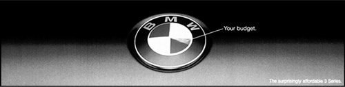 На логотипе BMW стрелка указывает на четвертушку фирменного круга (рис. 110). Подпись: «Ваш бюджет». И предлагается автомобиль 3-й серии по удивительно доступной цене.