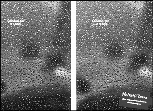 Внизу логотип туроператора и слоган: «Все, как на дорогом курорте. Только дешевле». Второе объявление в этой же серии. Вид из окна на пресловутый туман английской столицы (рис. 112). Слева читаем: «Лондон за $1000». Справа – «Лондон всего за $389».